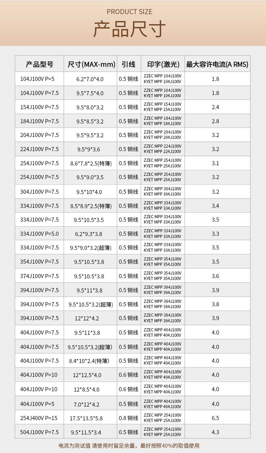 科雅ZZEC无线充专用CBB21(MPP)金属化聚丙烯薄膜电容器系列: